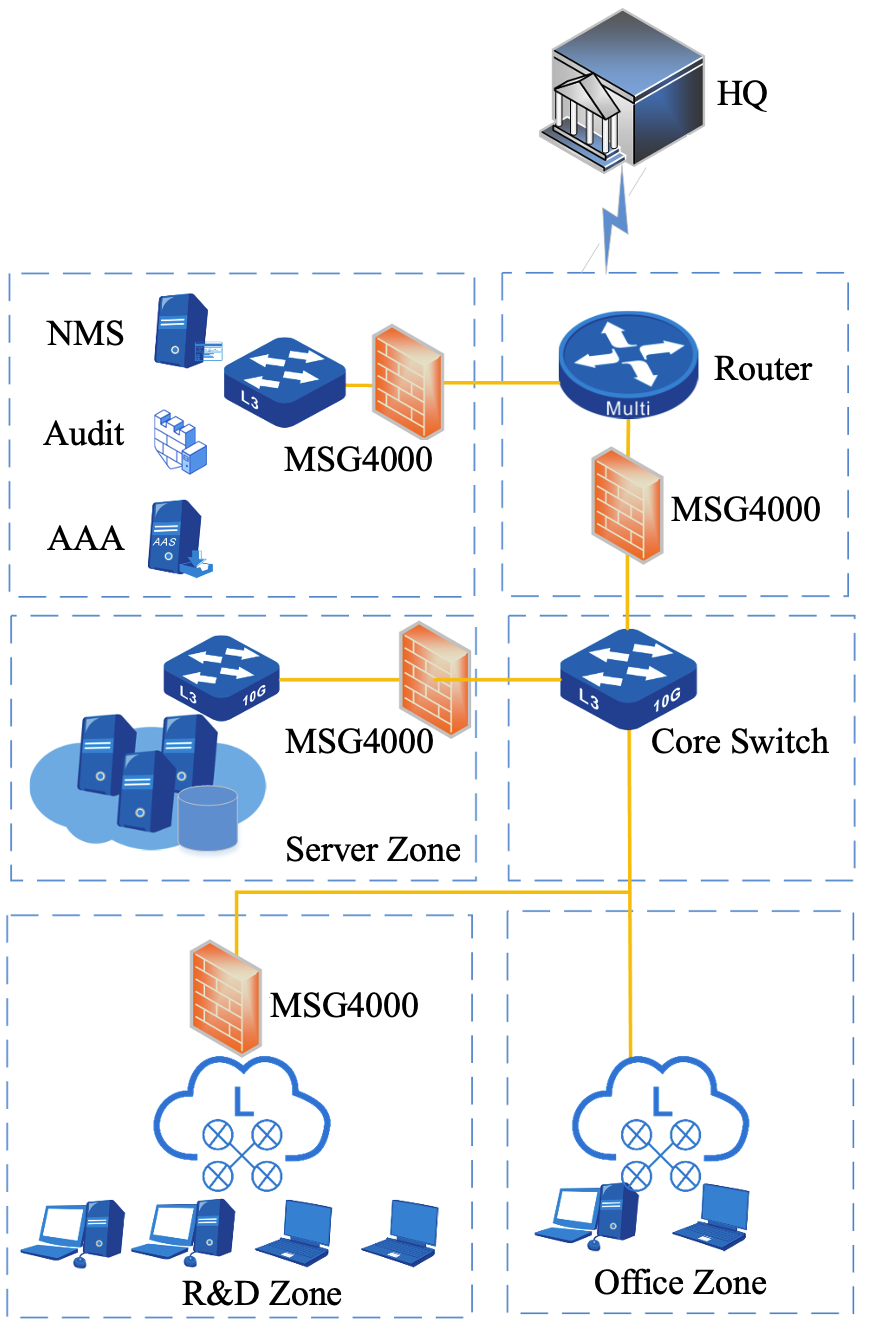 MPSec MSG4000-X4/X16 provides comprehensive application security protection and flexible expansion methods. It can be deployed in various industries such as government, finance, enterprise, and education. It is widely used in Internet egress, intranet area boundaries, data centers, server area security isolation, VPN networking, and other application scenarios.