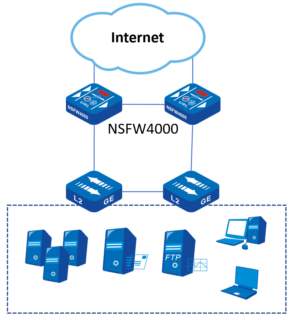 l Enable functions such as IPS, AV, vulnerability protection, and URL filtering to prevent viruses, Trojans, and worms from spreading across regions in the network.