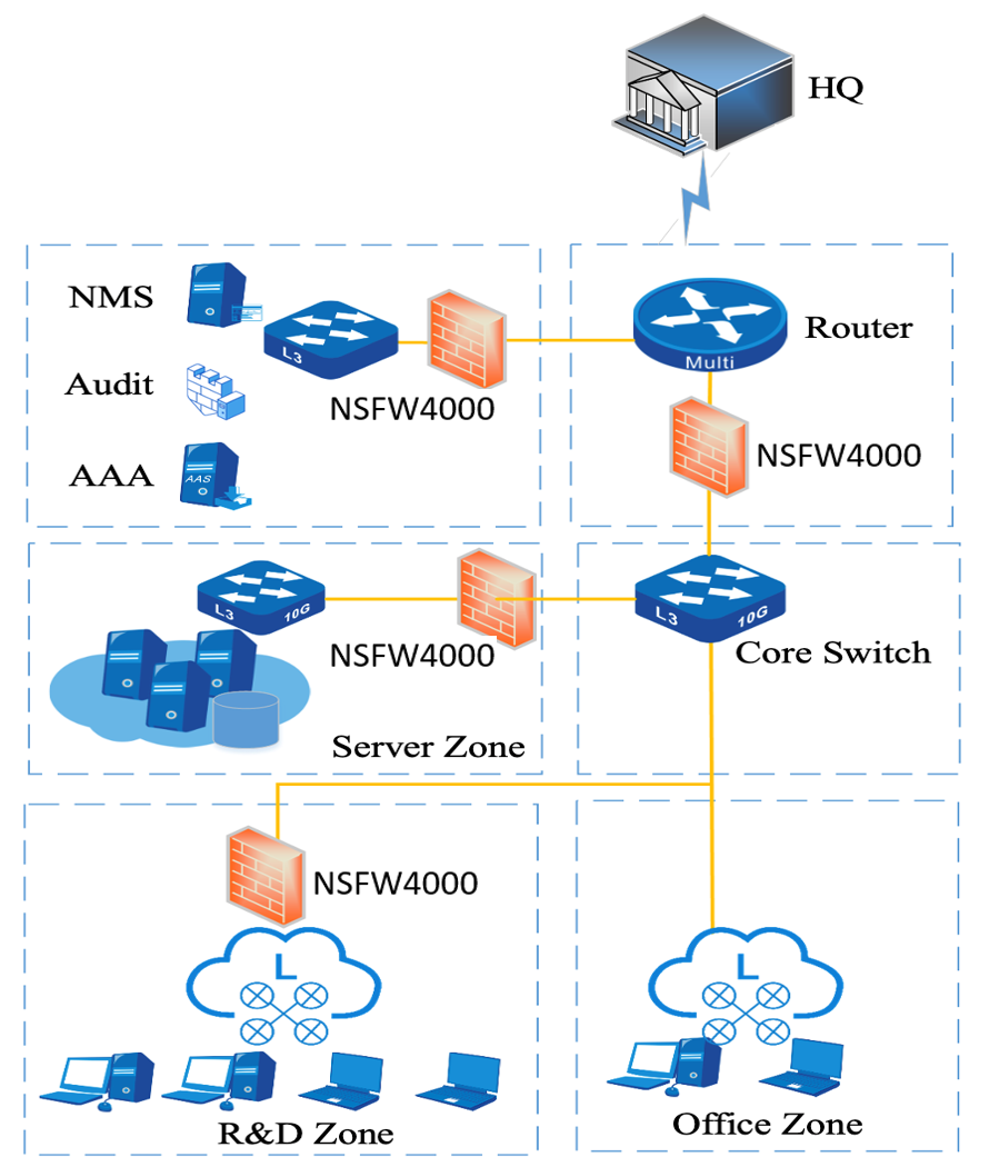 l Deploy next-generation firewalls between security domains, and improve access control measures to achieve logical isolation of regional borders.