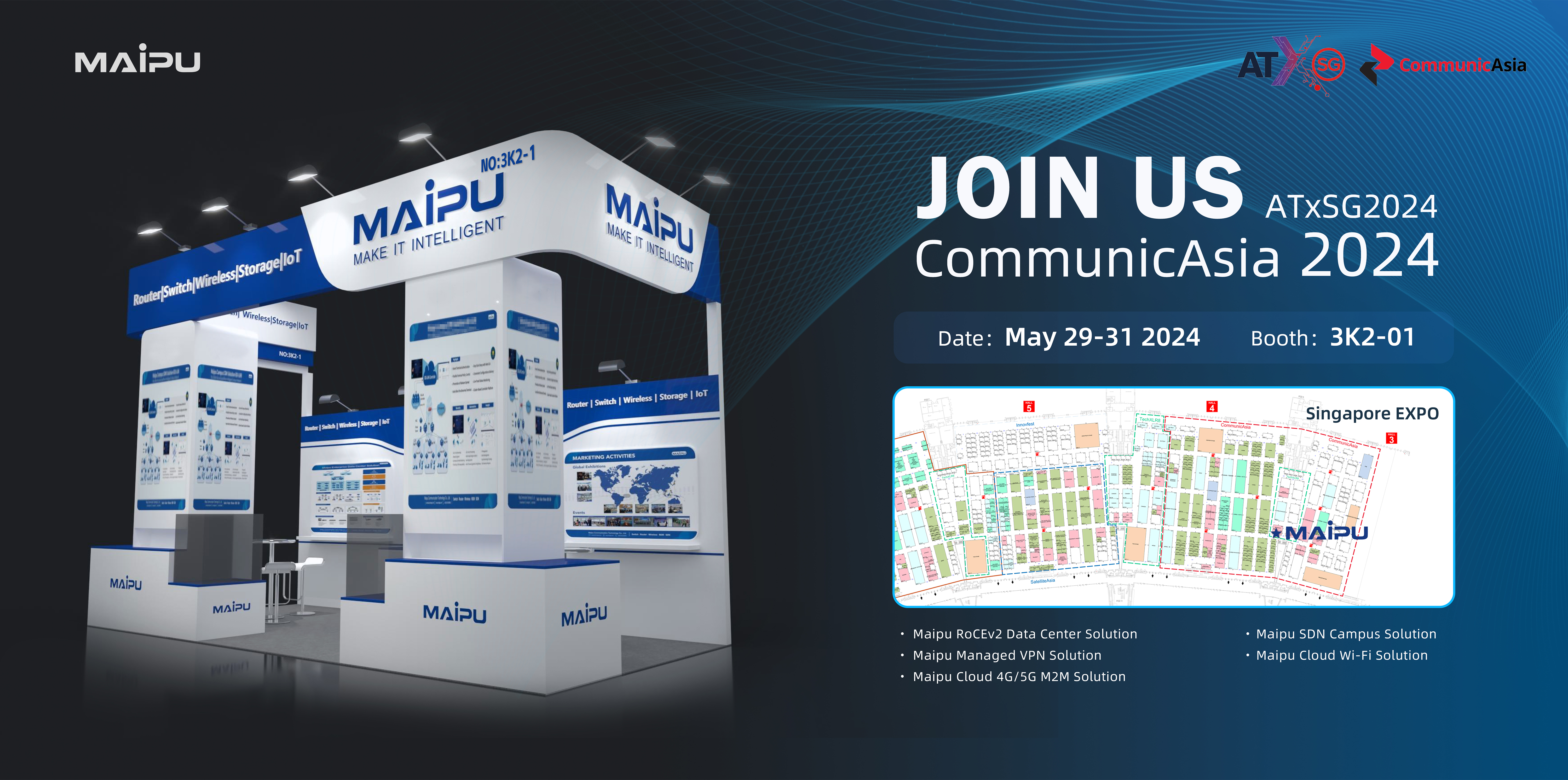 Join us at CommunicAsia2024 from May 29-31 at Singapore Expo, Booth 3K2-1 to discover our latest networking solutions, including RoCEv2 DataCenter, SDN Campus, Managed VPN, Cloud Wi-Fi, Cloud M2M. Our team of experts will be on hand to answer any questions you may have and provide you with a personalized demonstration of our products.